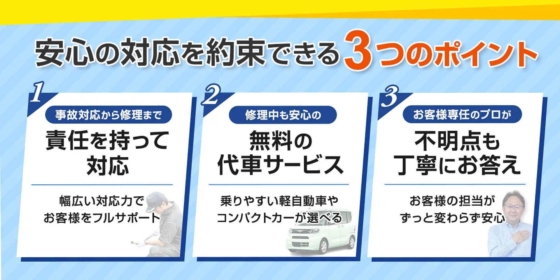 事故対応から車修理まで、全て責任を持って対応させていただきます。
